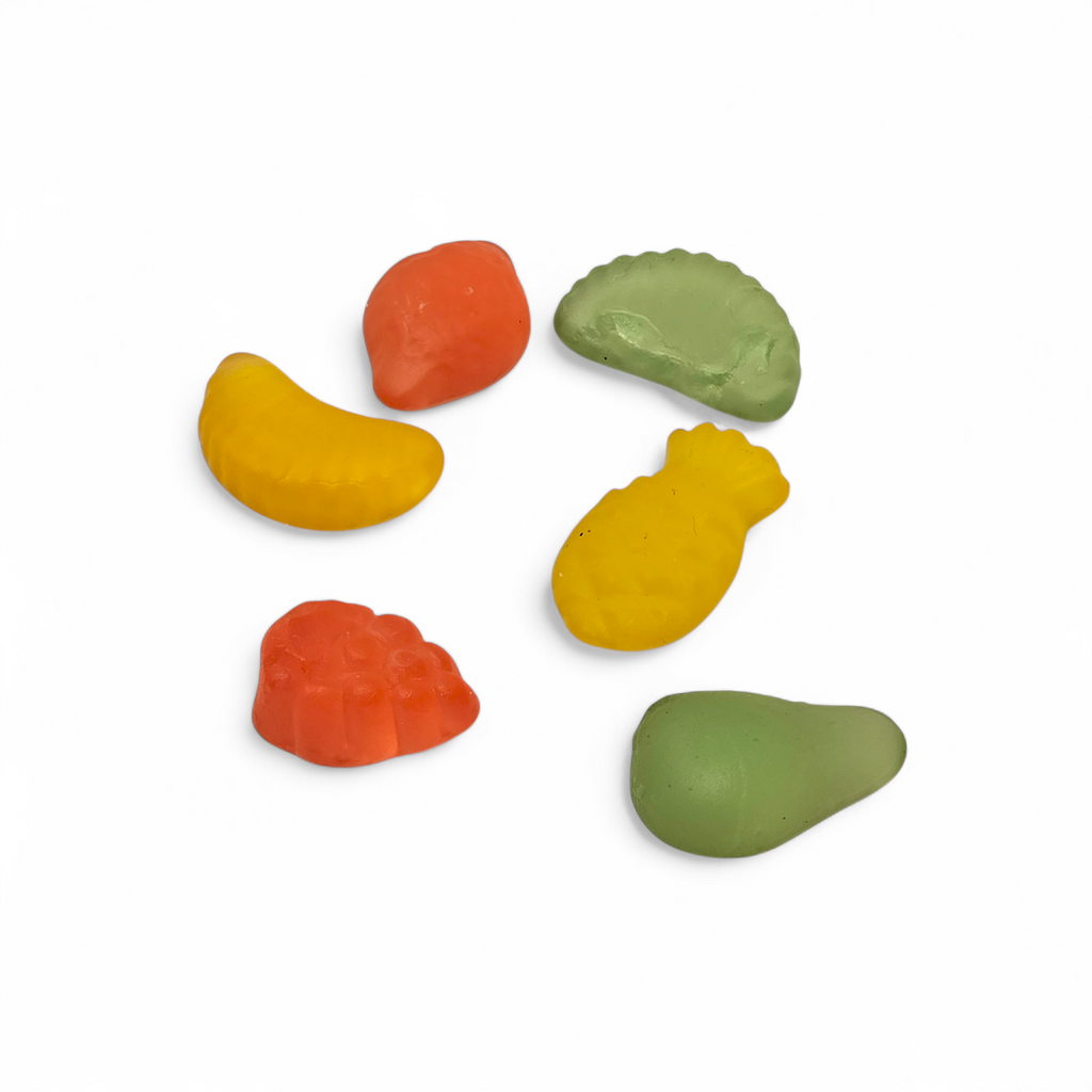 Fruktmix Sockerfri från Sam Grossist är mjuka gelégodisar med blandade fruktsmaker. En färgglad mix som ger varierad smak i varje bit, helt utan socker, perfekt för dig som vill ha ett smakrikt gelégodis med lättare känsla.